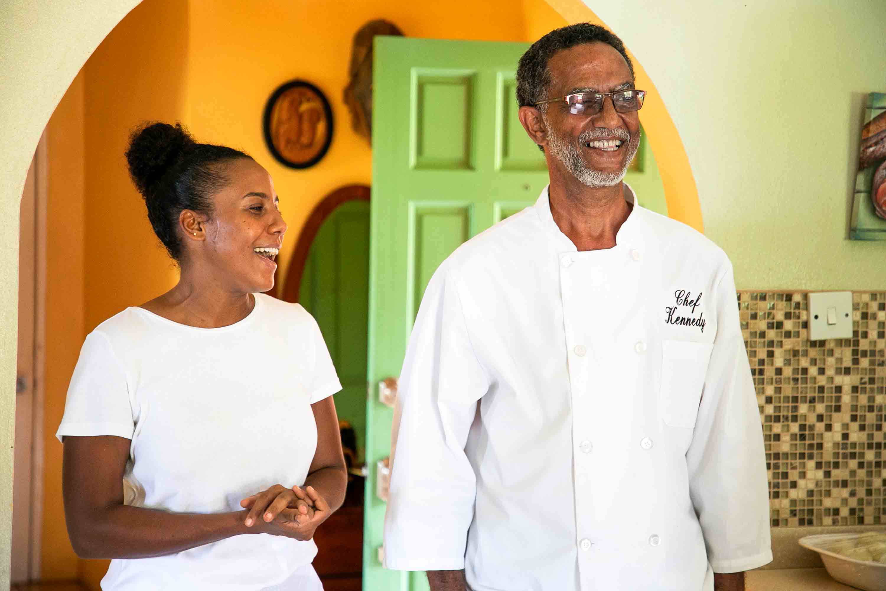 Atroll in the garden reveals those ingredients in the wild: Broad-leaf callaloo, breadfruit, green bananas, and golden, plump seasoning peppers. Immersed in this paradise of tall avocado trees, with spice shrubs up to your knees and palm fronds humming in the breeze, it’s easy to forget the hurricane could have turned the land into a molehill—if the land had been weeded as Roberts had wanted.