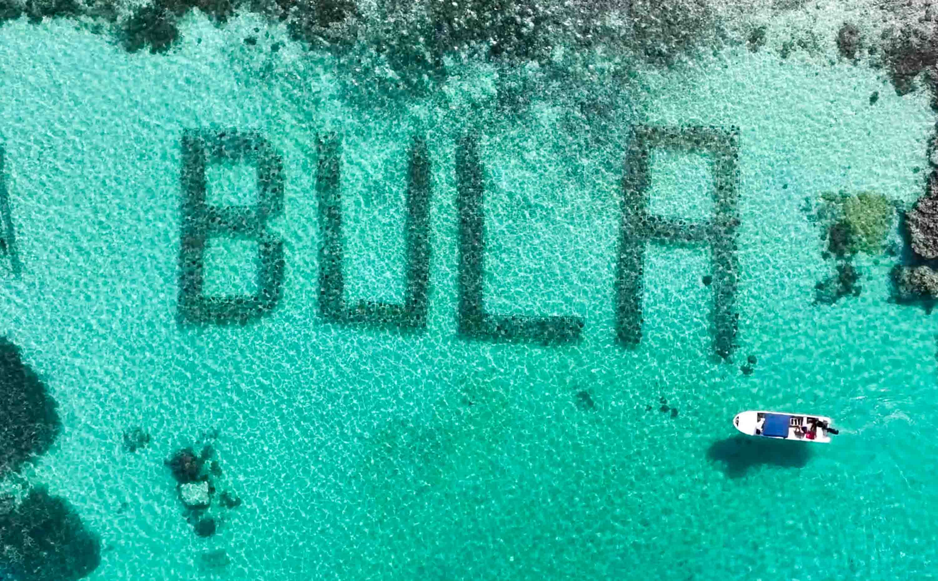 Fiji-based Bowden-Kerby, who runs the local NGO Corals for Conservation (C4C), partnered with Plantation Island Resort to build the giant underwater reef. 147 feet long (45 meters) and spelling out ‘BULA’, the Fijian word for ‘hello’ or ‘welcome’.