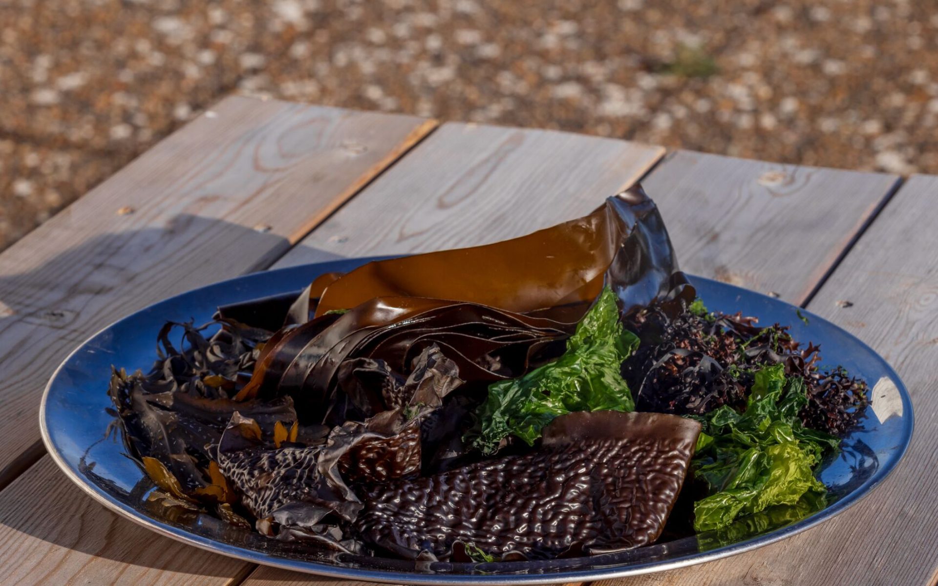 Today, however, I’m staying on dry land and joining her for a seaweed cooking class. In front of me, a shiny plate showcases 12 different seaweed types ranging in texture, color, and smell—from gloopy and gritty, long and stringy to rubbery and spongy. Over the course of the afternoon, I’m going to learn how to transform this bounty of seaweed—harvested fresh this morning—into a delicious algae-based feast.