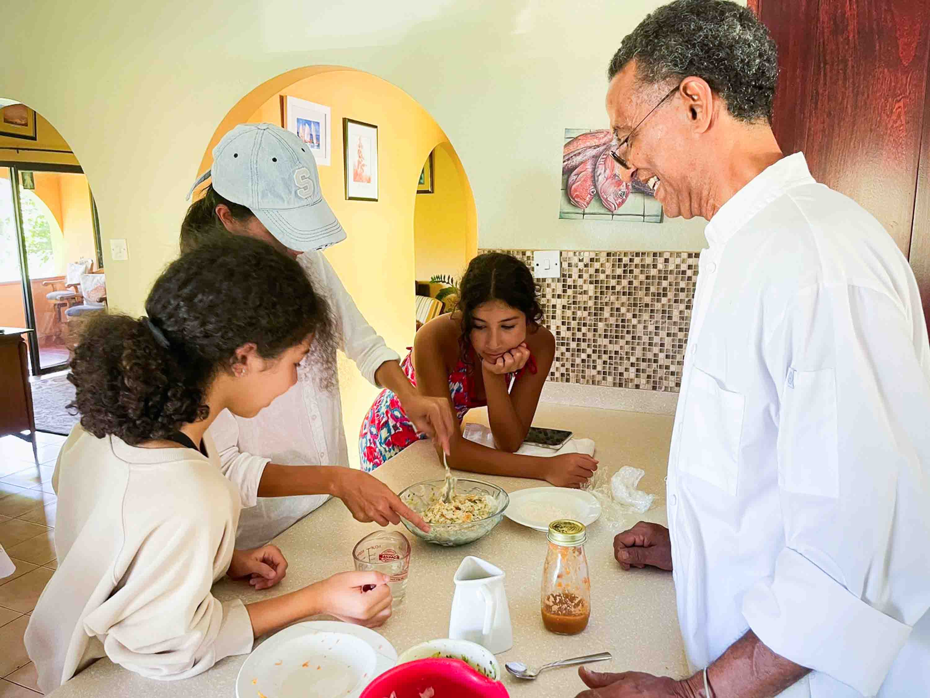As part of the experience, we’ve just prepared an oil-down, Grenada’s national dish, a hearty stew made of layers of vegetables and salted meat and boiled on a fire. Of the 11 ingredients needed to make the oil-down, seven come from Roberts’ garden. All, save for the meats—chicken, pork and fish—which he buys locally.