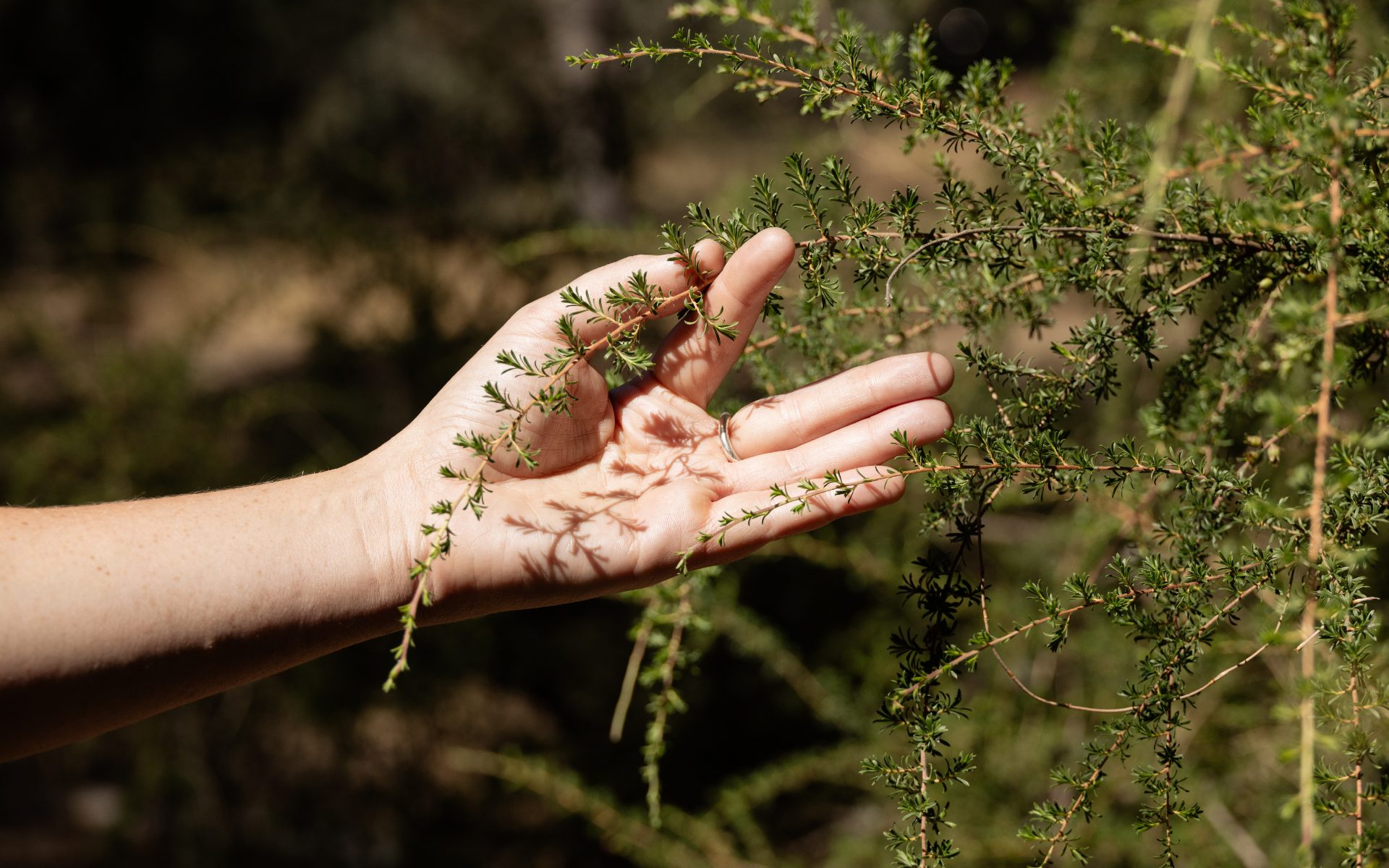 “These beautiful leaves are really good for adding flavours to any of your dishes,” says Kitana Mansell as she guides us through the sun-dappled bush, brushing the leaves of (what I now know to be) the kunzea ambigua with her fingertips. “At Palawa Kipli, we like to mix it in with some native honey and add it with wallaby and mutton birds—we’ll just put these leaves on the coals and let it smoke through.”