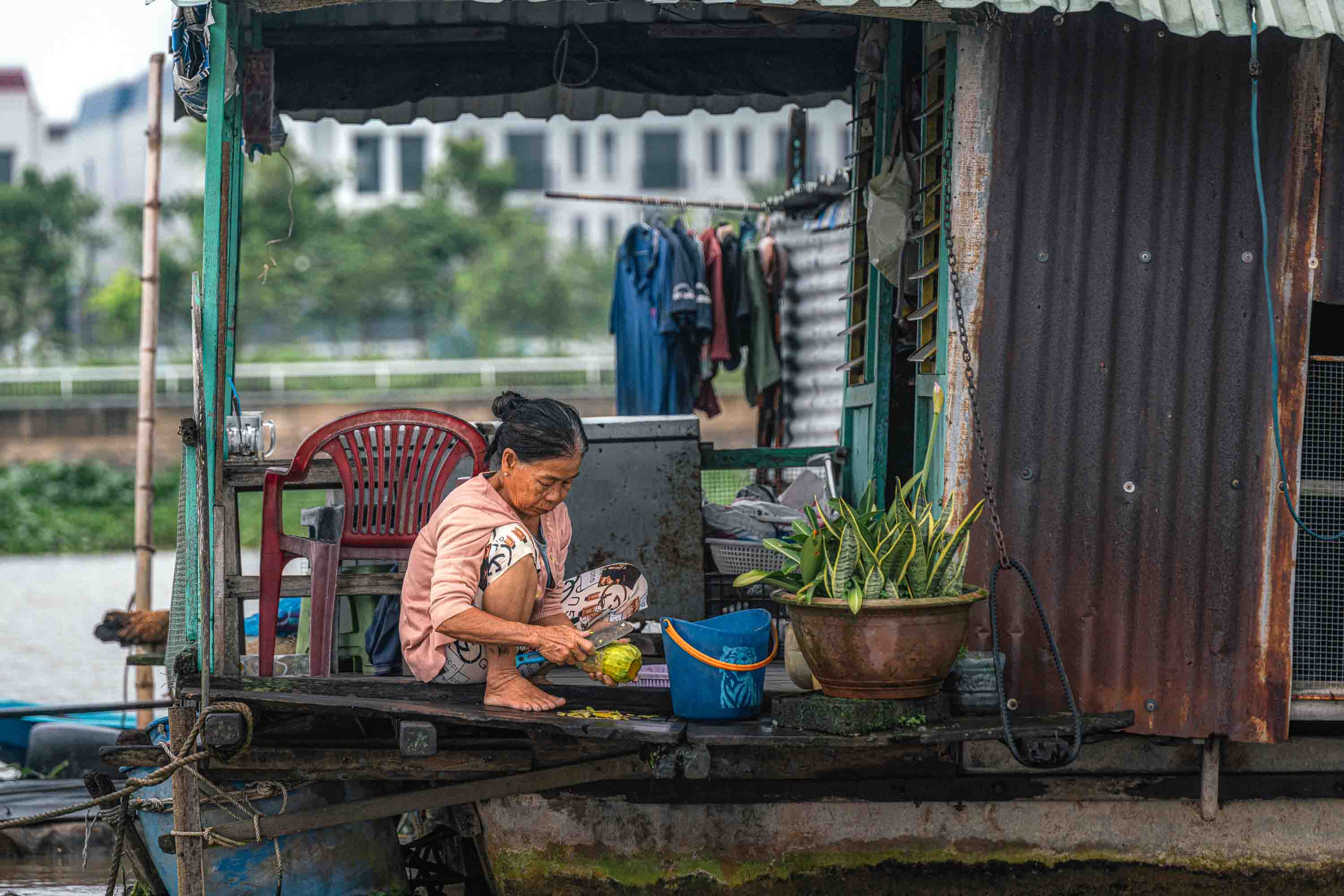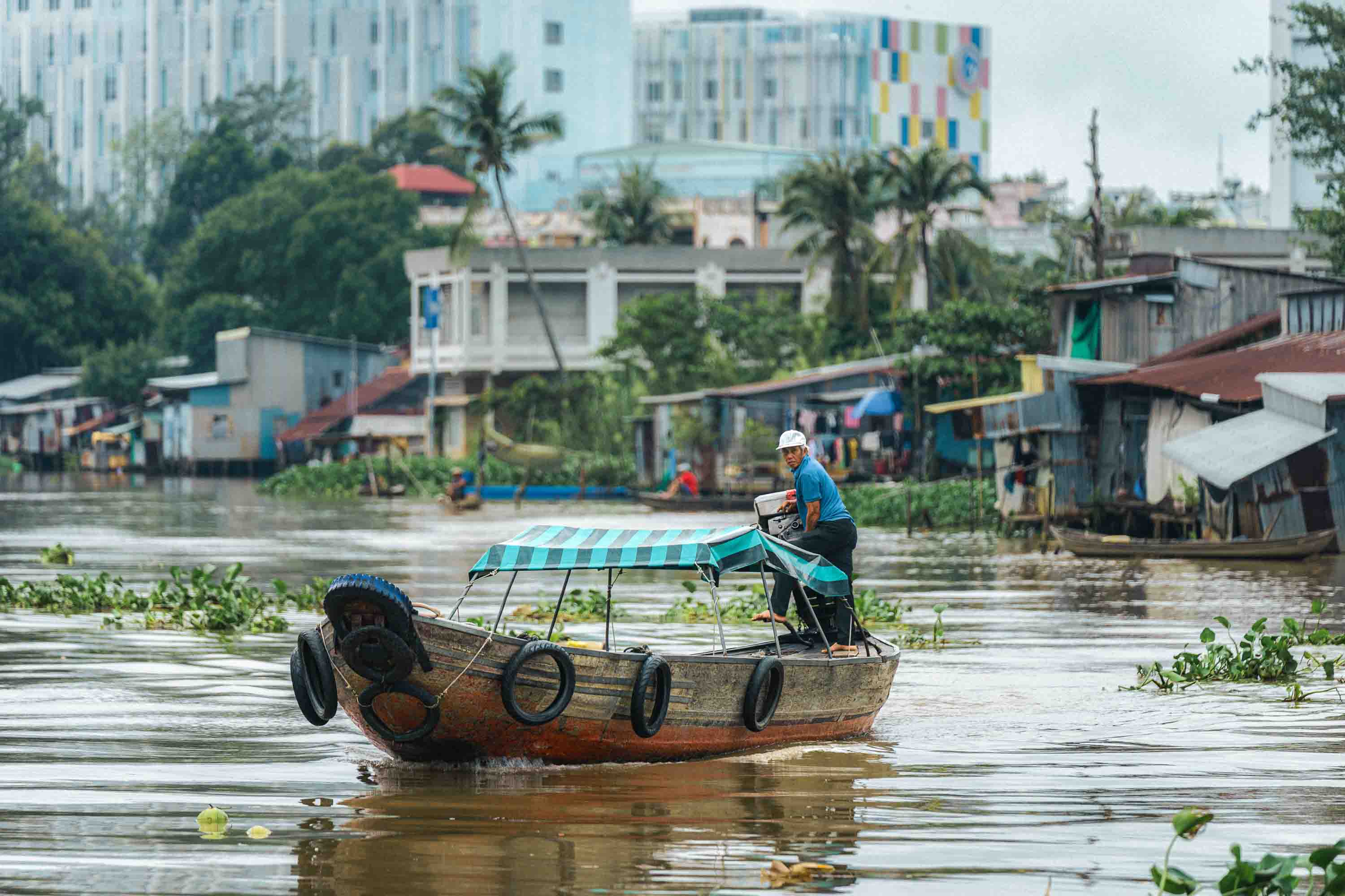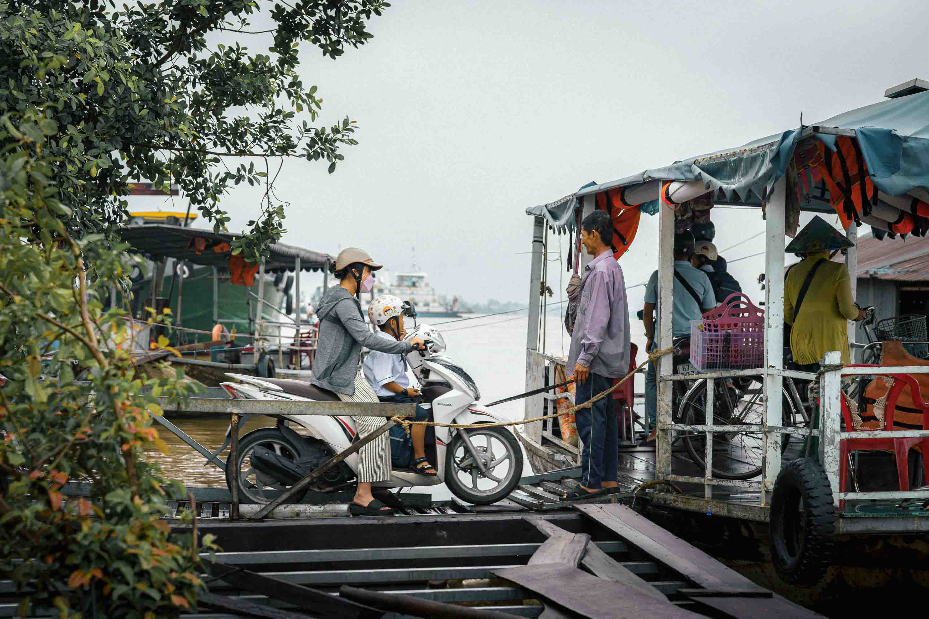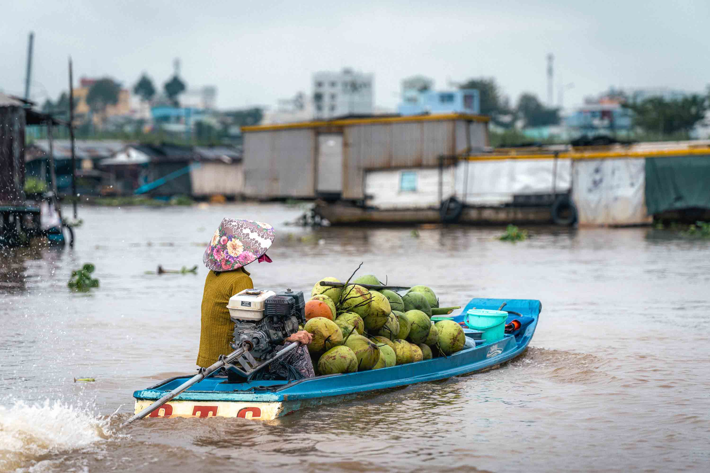 We glide past less human scenes too—hulking mechanics’ barges, floating petrol stations—but even they feel like essential pieces of this riverine puzzle. “The floating market used to be just outside Long Xuyên,” anh Trường tells me as we idle between two floating workshops, “but it grew too big about 20 years ago and had to move further away. Then it just got smaller and smaller.” I ask if one day it will disappear completely and he smiles. “Who knows?”
