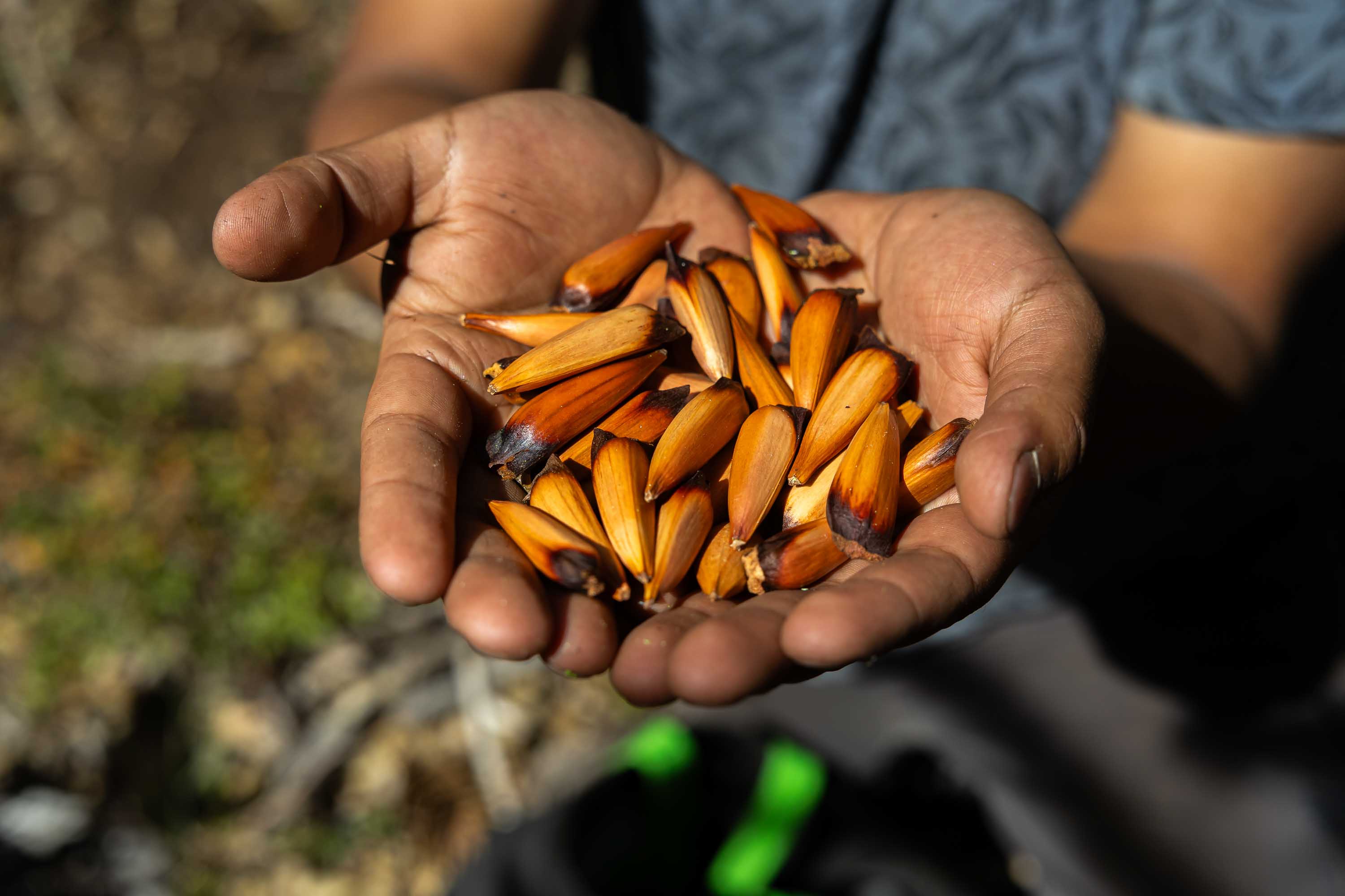 “We take good care of the trees because we see them like a mother that gives us food,” Matilde Domihual tells me inside her homely restaurant, Ruka Mawida, as she prepares piñónes. These seeds of the araucania tree (known in English as the monkey puzzle tree) are the length of my thumb, covered with a pinky-brown shell, and have a waxy texture and smoky, nutty flavor, similar to chestnuts.