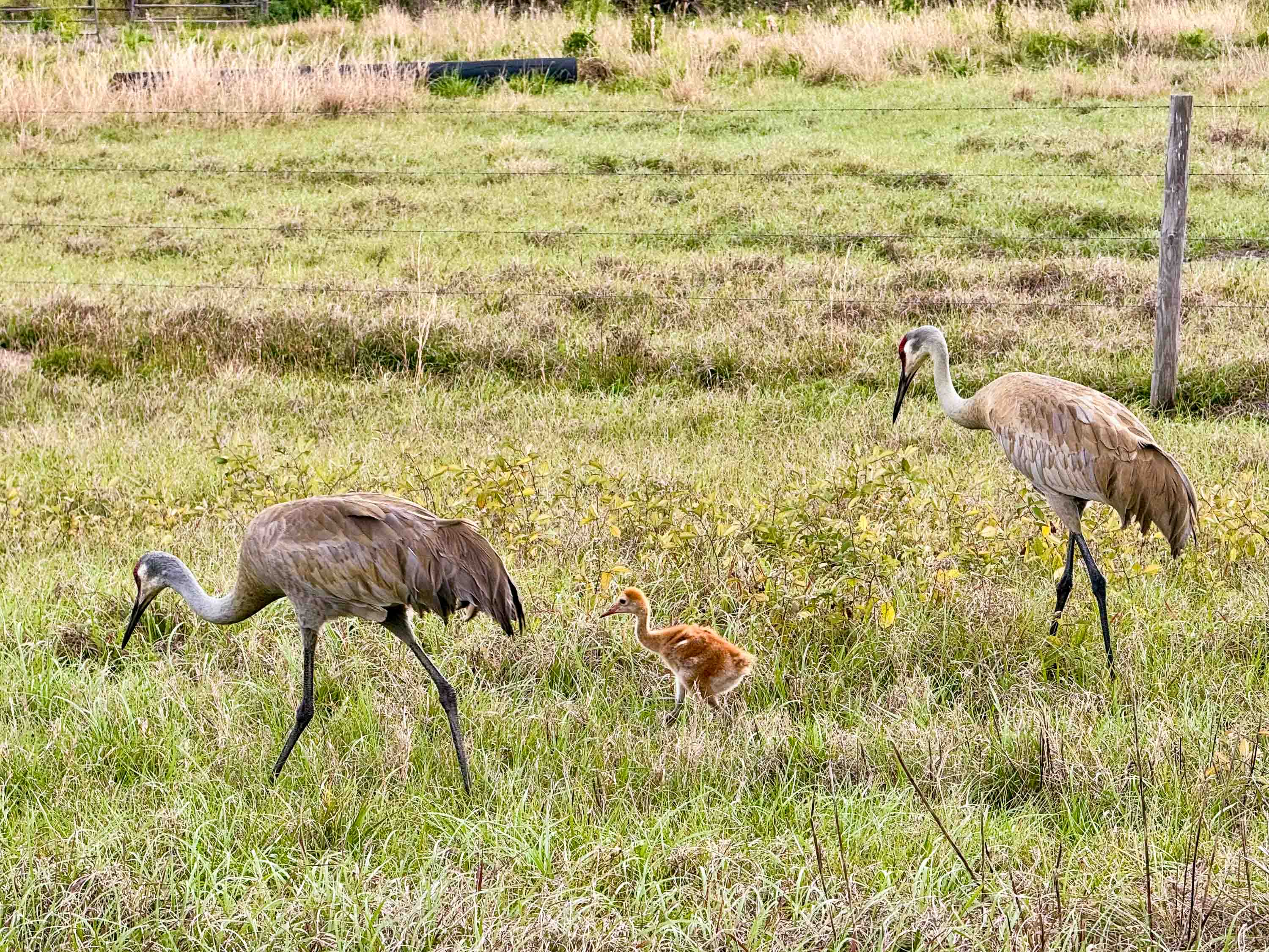 Wildlife being unpredictable though, we see mostly birds. We paddle past wood storks and great egrets hunting in the cypress swamp shallows at Shingle Creek Regional Park. Gopher tortoises and Florida panthers elude us on a hike at the Disney Wildlife Preserve, but we’re charmed by a pair of sandhill cranes and their fluffy chick. In Shell Key Preserve, the water is too cold and turbid to spot manatees, but we watch pelicans inelegantly fish, and red herons chase their prey through the water.
