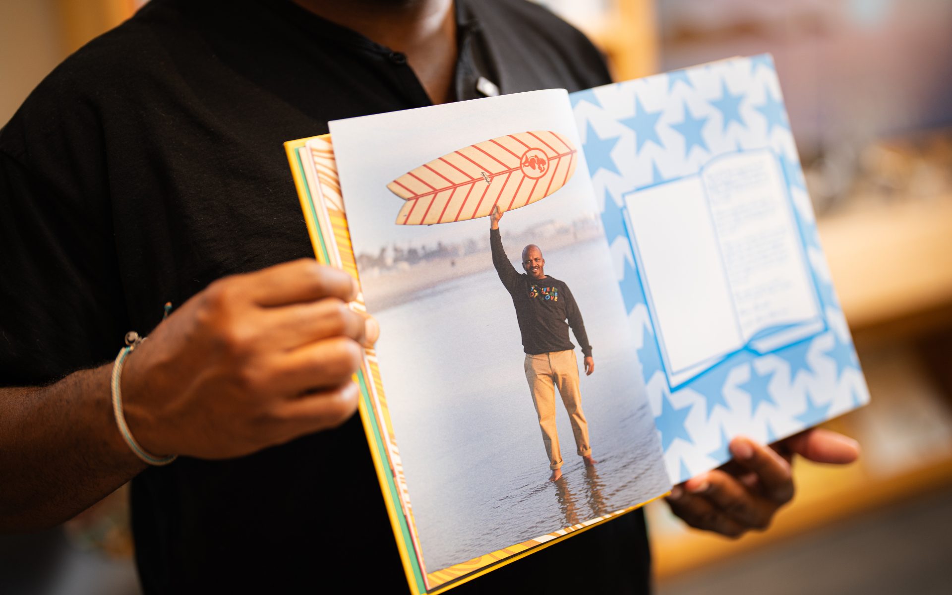 For Selema, presence is the fuel source for both his artistry and his activism. It’s a timely reminder for us all as we navigate a society that champions distraction and prioritizes convenience. Do I want to buy a board and schedule a surf lesson? Not necessarily. But do I feel compelled to slow down, sit in stillness and spend more time with my toes in the sand? Absolutely.