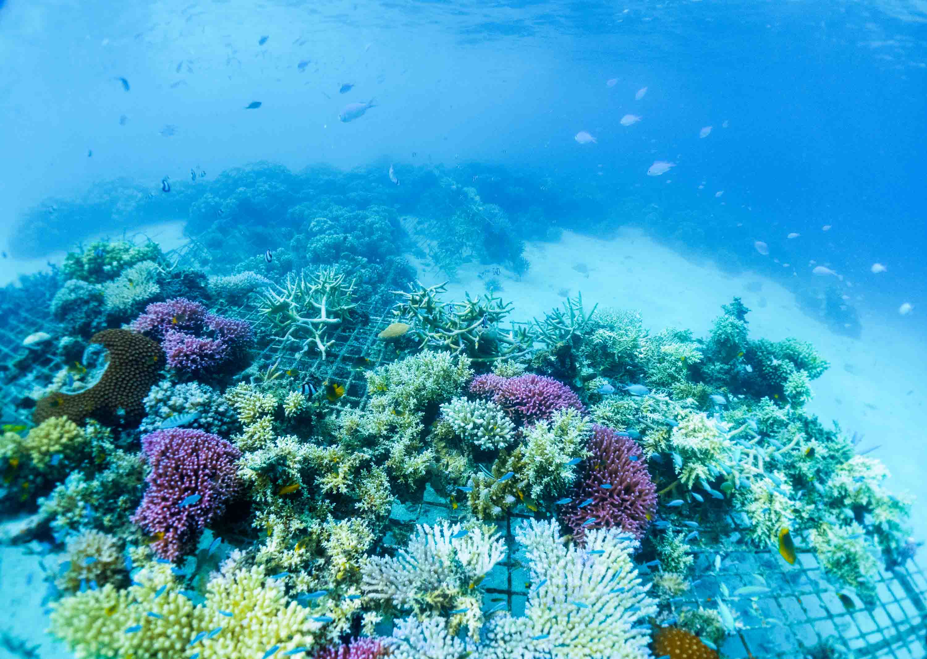 “We are very happy to see the coral thriving and the fish doing their homemaking so they are jumping from coral to coral, trying to make a home,” she says. “In another year, I wouldn’t expect to see the mesh structures which will be covered in corals and much more fish. It’s going to be a happy reef.”